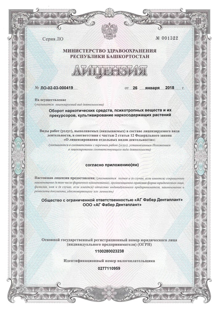 Лицензия на оборот наркотических средств, психотропных веществ и их прекурсоров