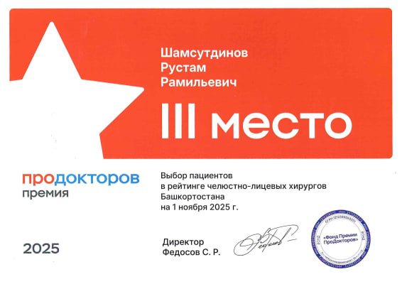 - Удостоверение о ПК 04 083944, рег. № 02 574 от 01.03.2021 г. «челюстно-лицевая хирургия»